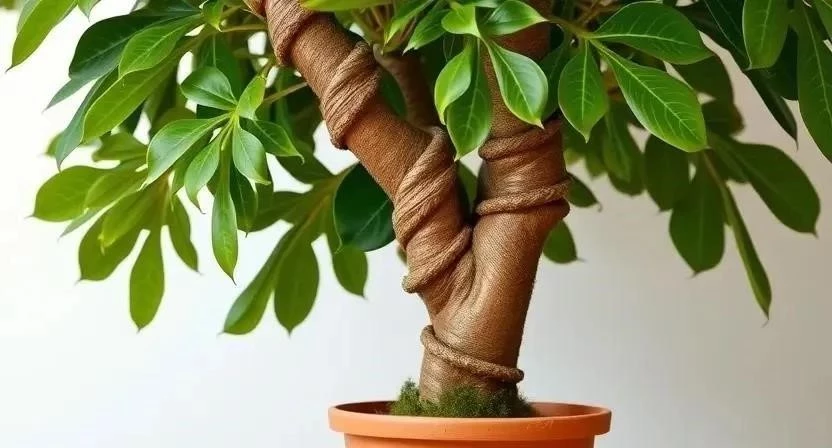 - Ствол: Ствол должен быть крепким и без повреждений. Если ствол заплетен в косичку, убедитесь, что она не слишком тугая и не сдавливает растение.