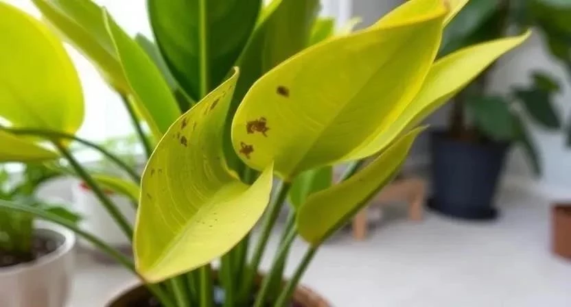 - Почему желтеют листья Замиокулькаса черного? – Из-за перелива, недостатка света или сквозняка.