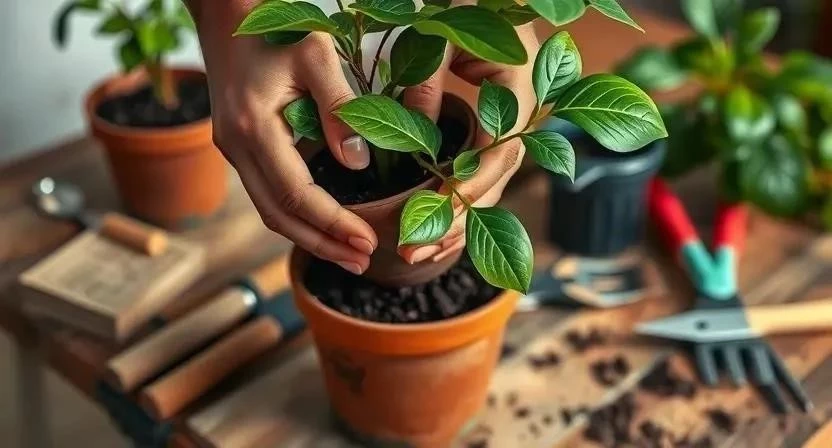 - Пересадите укорененный черенок в горшок с грунтом.