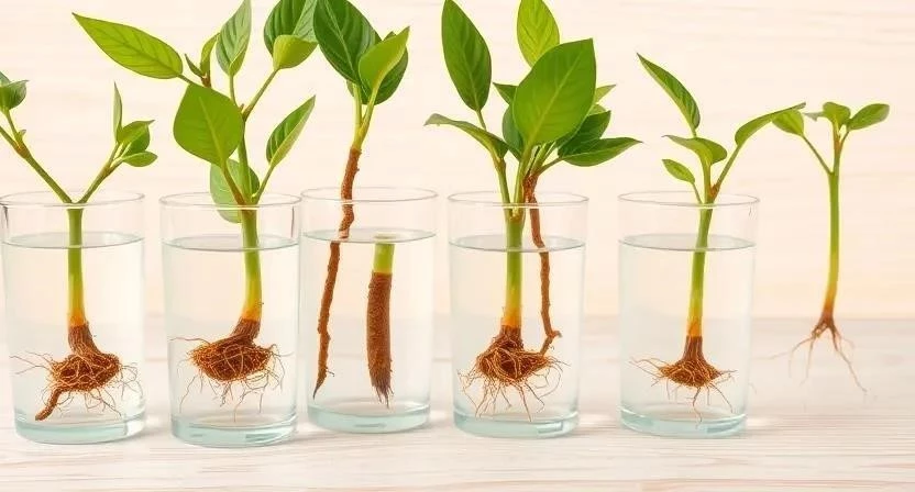 - Поместите черенок в воду или влажный песок.