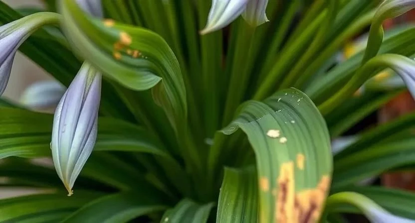 Агапантус может подвергаться нападению вредителей, таких как тля, щитовка и паутинный клещ. При обнаружении вредителей обработайте растение инсектицидом. Растение также может страдать от грибковых заболеваний, таких как серая гниль. При обнаружении признаков болезни обработайте растение фунгицидом. Желтеющие листья могут быть признаком недостатка питательных веществ, переувлажнения или недостатка света. Если агапантус не растет, возможно, ему не хватает света или питательных веществ.
