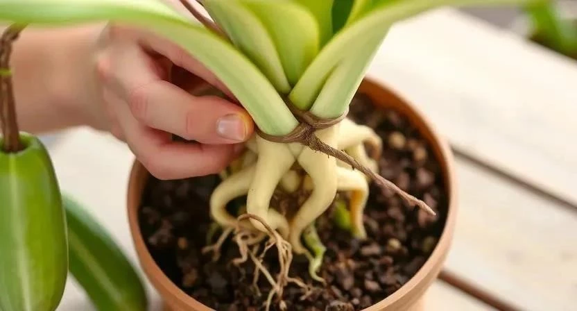 - Аккуратно извлеките луковицу из старого горшка, стараясь не повредить корни.