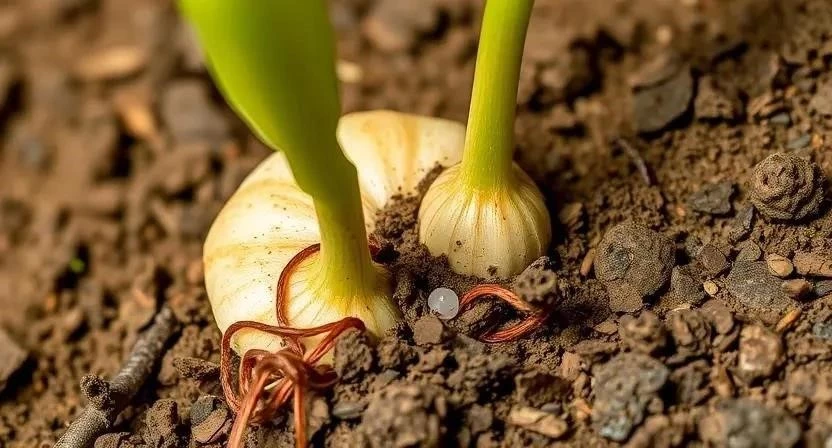 - Убедитесь, что на луковице есть зачатки корней.