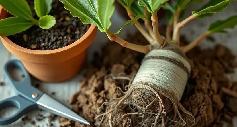 - Осмотрите корни и удалите поврежденные или гнилые.