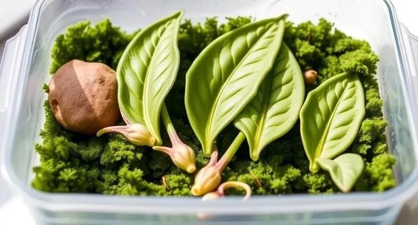 - Листьями: Положите лист на влажный песок или вермикулит и накройте пленкой. Через несколько недель на листе появятся корни и новые побеги.