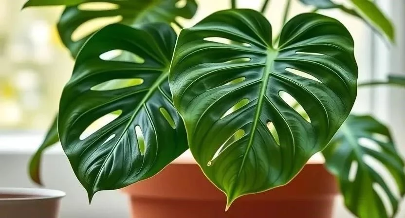 - Монстера Адансона «Mint»: Светло-зеленые листья с нежными прожилками.