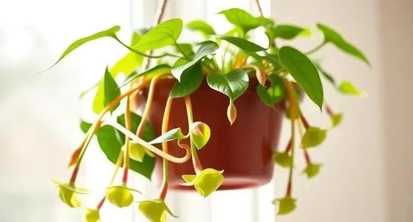 - Церопегия Сандерсона (Ceropegia sandersonii): Ее побеги более тонкие и длинные, а листья имеют более округлую форму.