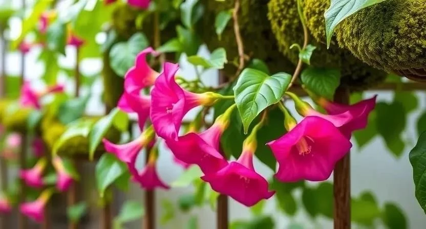 - Дипладения великолепная (Mandevilla splendens) – отличается более крупными цветками и более быстрым ростом.