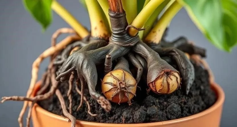 - Корни: Загнивание, потемнение, неприятный запах.