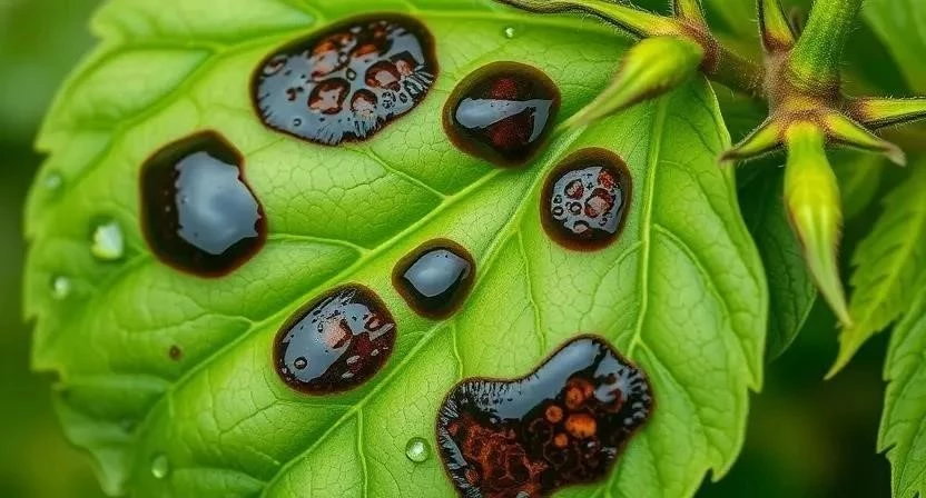 - Бактериальная пятнистость листьев: вызывает появление мелких водянистых пятен на листьях, которые со временем темнеют и отмирают.