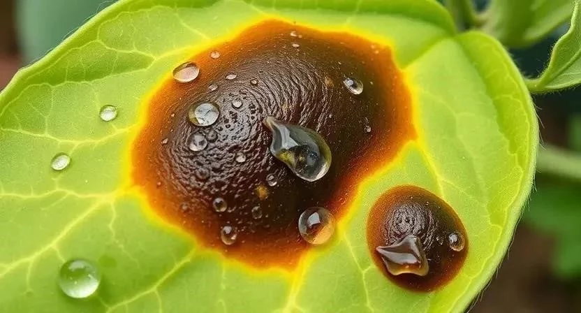 - Водянистые пятна на листьях, которые быстро увеличиваются в размере.