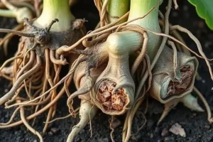 | Корневая гниль | Потемнение и размягчение корней, увядание растения | Корни | Переувлажнение почвы, заражение через почву |