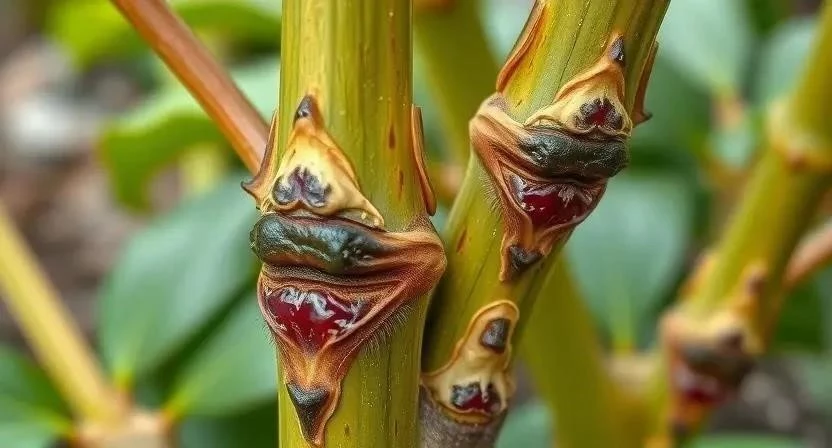 - Потемнение сосудистой системы: При некоторых инфекциях темнеет сосудистая система стебля.