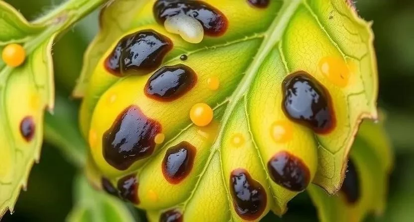 Бактериальные заболевания часто проявляются в виде водянистых пятен на листьях, которые затем темнеют и становятся маслянистыми. Может наблюдаться увядание листьев, гниение стеблей и корней, а также появление язв и трещин на стволах. Бактериальные ожоги, например, характеризуются внезапным увяданием листьев и стеблей, как будто они обожжены огнем.