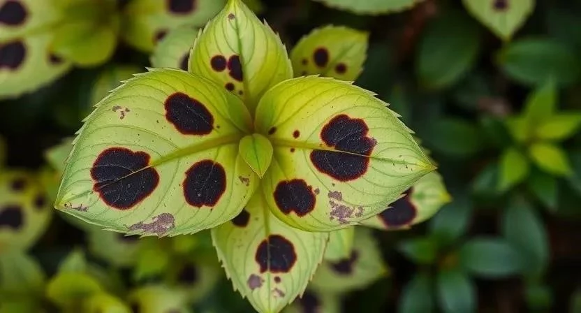 | Черная пятнистость | Темные пятна на листьях | Пятна увеличиваются и приводят к отмиранию листьев |