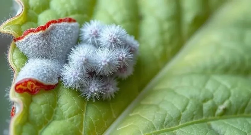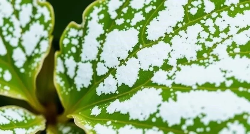 Симптомы: На листьях появляется белый мучнистый налет, который постепенно распространяется на стебли и бутоны. Листья деформируются и отмирают.