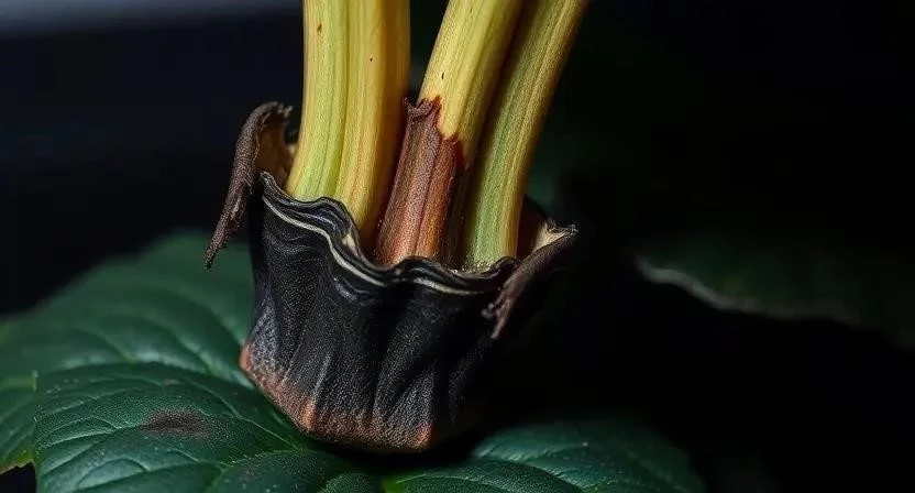 Симптомы: У основания стебля появляется темная, загнивающая область. Стебель становится мягким и ломким, растение увядает и погибает.