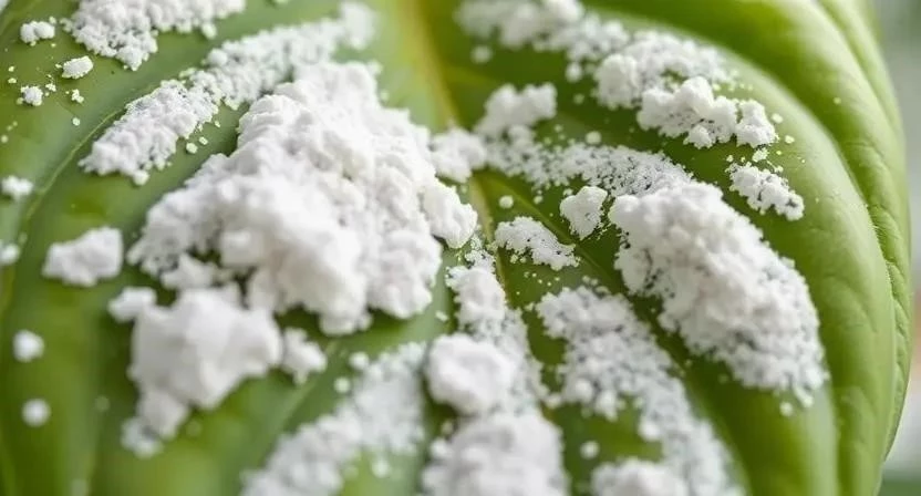 - Налет на листьях: Белый, серый или черный налет, похожий на муку или пыль.
