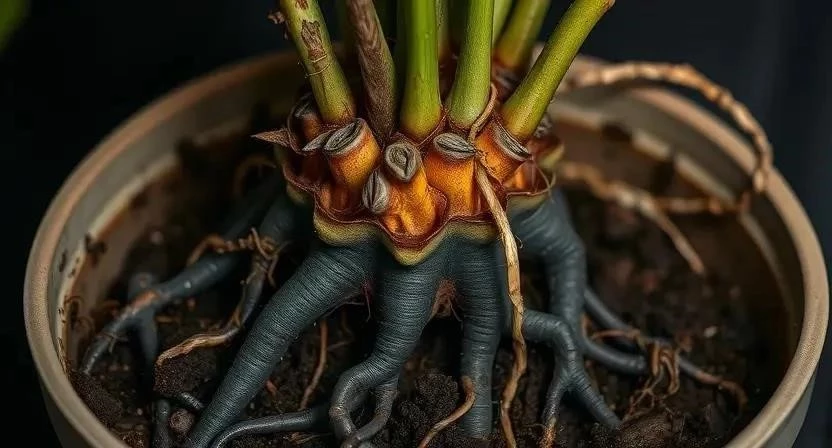 - Неприятный запах: При загнивании корней может появиться неприятный запах.