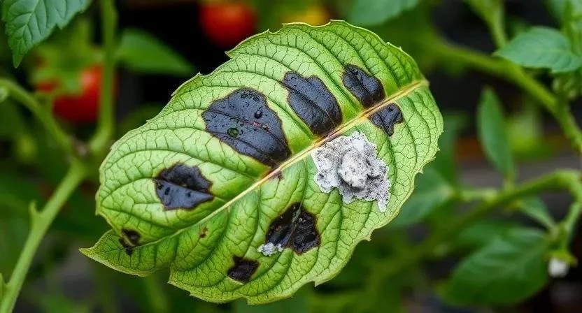 - Фитофтороз: Поражает томаты, картофель и другие пасленовые культуры, вызывая бурые пятна на листьях и стеблях.