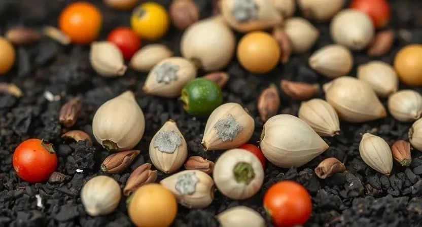 Зараженные семена: Как грибок попадает в семена? Какие семена наиболее подвержены заражению? Грибок проникает в семена через микротрещины в оболочке или через семяносцы. Наиболее подвержены заражению семена томатов, огурцов, перца, тыквы, а также зерновые культуры. Неправильное хранение семян, высокая влажность и недостаточная обработка способствуют развитию грибковой инфекции. Я, например, однажды купил партию семян огурцов, которые хранились во влажном подвале, и всхожесть была крайне низкой, а выросшие растения быстро заболели.