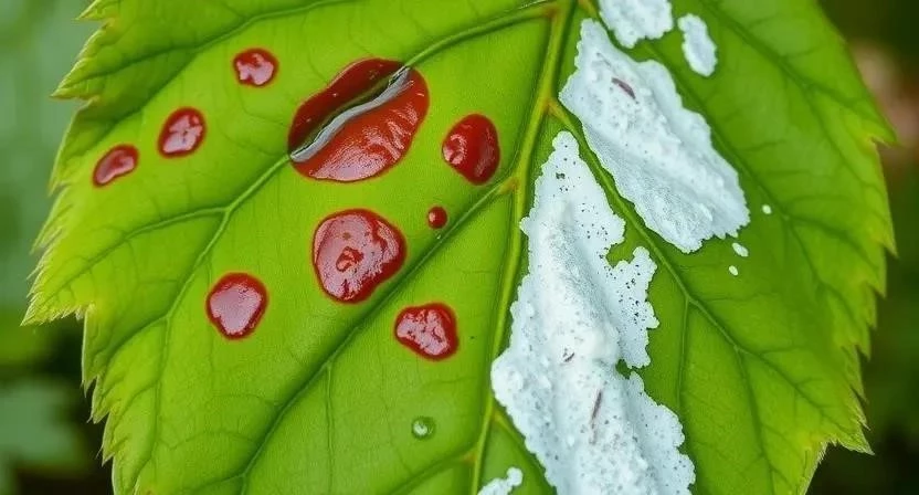 - Мучнистая роса: Покрывает листья и стебли белым мучнистым налётом. Поражает многие растения, включая розы, огурцы, виноград.