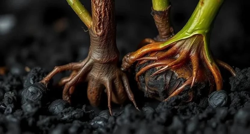 - Появление наростов или язв: Образование аномальных образований на корнях или стеблях.