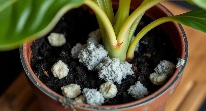 Однажды я перелил свой спатифиллум, и листья начали желтеть и покрываться коричневыми пятнами. Сначала я не понял, что происходит, но потом заметил плесень на поверхности грунта и понял, что это корневая гниль.