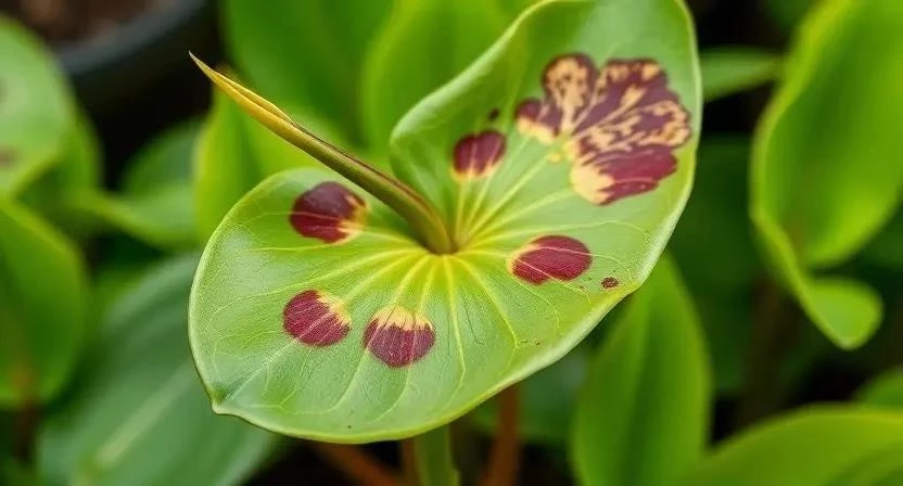 Ответ: Это может быть признаком грибкового заболевания. Необходимо внимательно осмотреть растение и определить тип заболевания. Затем следует удалить пораженные листья и обработать растение фунгицидом.
