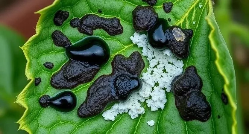 - Налет на листьях и стеблях: Белый, серый или черный налет, похожий на муку или плесень.