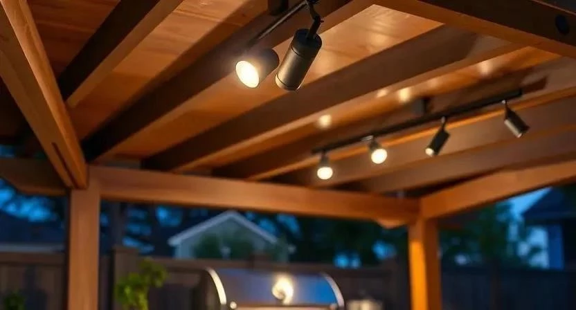 - Трековое освещение: Позволяет направлять свет в нужные зоны, идеально подходит для беседок с мангалом или обеденной зоной.