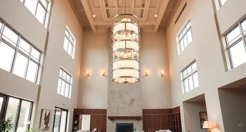 - Какие светильники лучше всего подходят для гостиной с высокими потолками? Люстры, подвесные светильники и трековые системы.