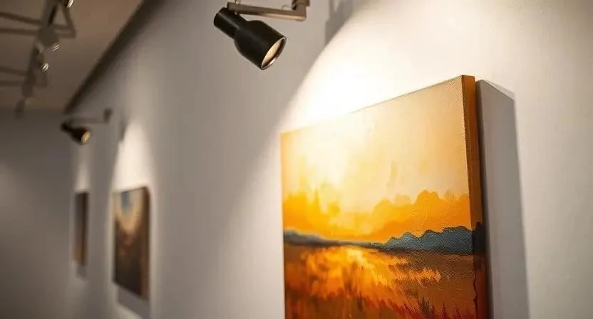 Ответ: Для освещения картин рекомендуется использовать направленный свет с высоким индексом цветопередачи (CRI 90+).