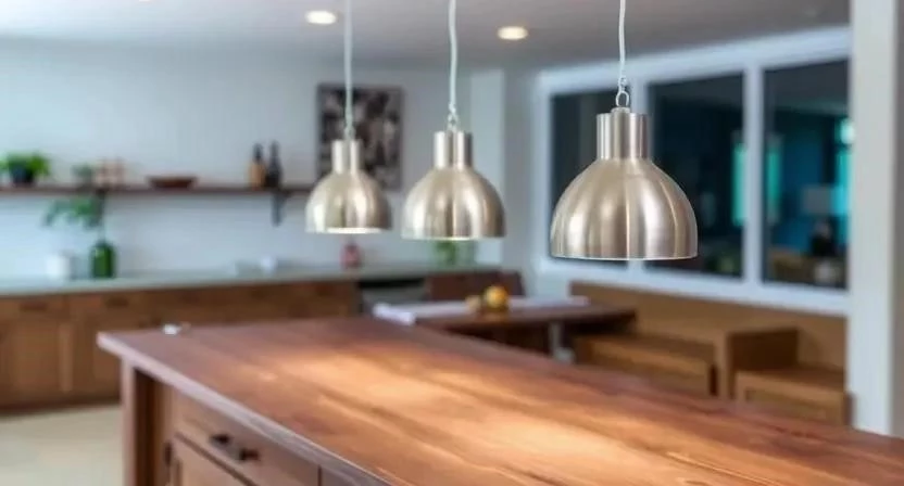 - Подвесные светильники: Хорошо смотрятся над обеденным столом или кухонным островом.