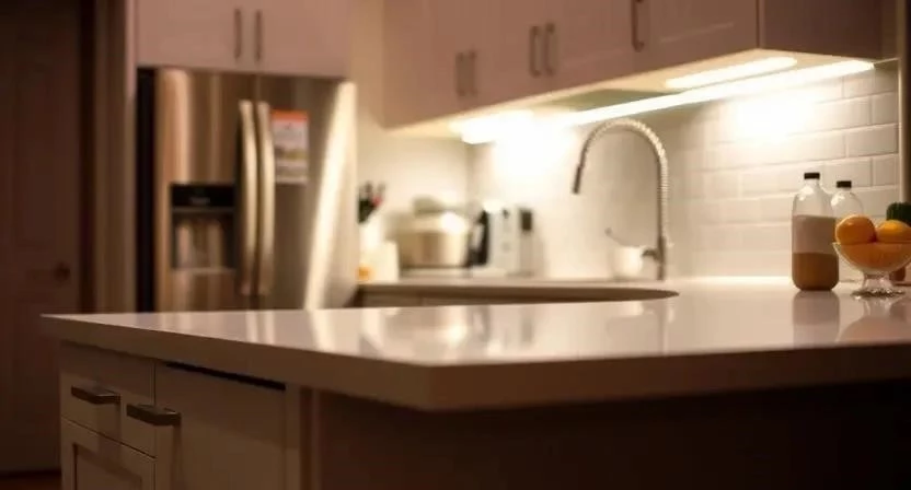 - Светодиодные ленты: Могут использоваться для подсветки рабочей поверхности, шкафов или полок.