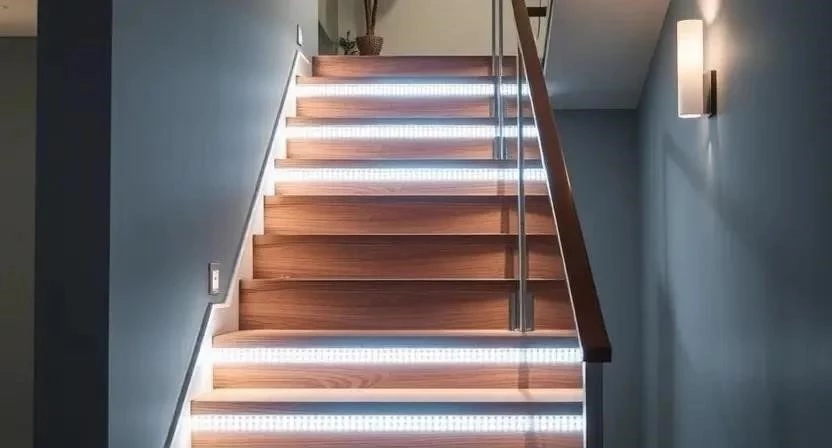 - Какие типы светильников лучше использовать для лестницы? Рекомендуется использовать светодиодные светильники (LED) – они экономичны и долговечны.