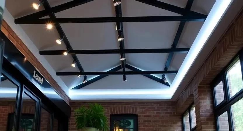 | Лофт | Споты, светодиодные ленты | Черный, серый, коричневый | Открытая проводка, металлические элементы |