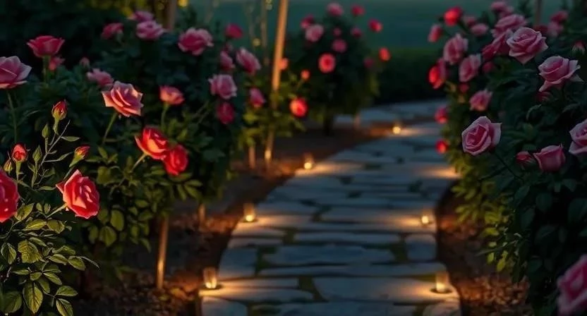 Вопрос: Как создать атмосферу романтики в розарии с помощью освещения?