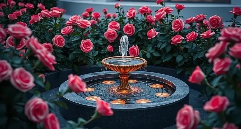 - Подводные светильники: Для освещения фонтанов или водоемов в розарии.