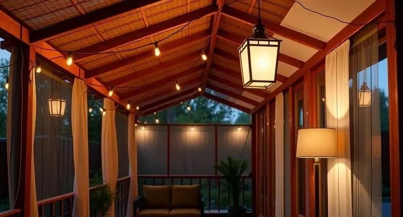 - Как создать уютную атмосферу на террасе? Используйте садовые светильники, настенные бра и гирлянды.