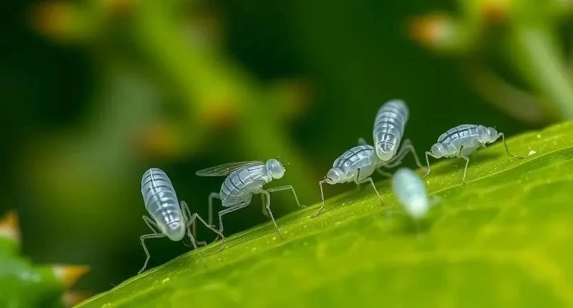 Белокрылка – это мелкое насекомое, длиной всего 1-2 мм, покрытое белым восковым налетом, из-за которого и получило свое название. Взрослые особи похожи на крошечных мотыльков. Жизненный цикл белокрылки состоит из нескольких стадий: яйцо, личинка, куколка и взрослое насекомое. Яйца откладываются на нижней стороне листьев. Личинки, похожие на маленькие щитки, питаются соком растений. Куколки неподвижны и также располагаются на листьях. Взрослые особи активно летают и размножаются.