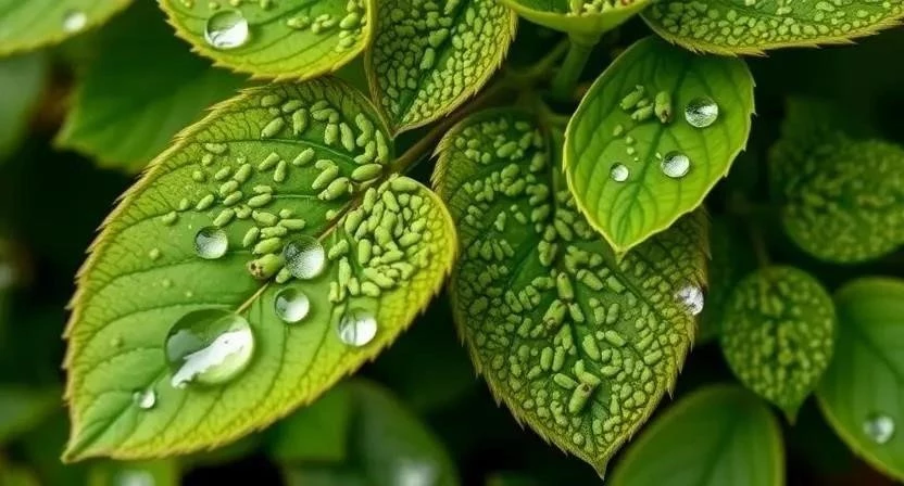 - Наличие насекомых: Видимые скопления мелких насекомых на листьях и стеблях.