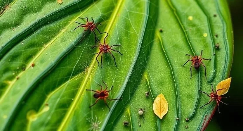 - Паутинный клещ (Tetranychus urticae): Очень быстро размножается, образует паутину на листьях. Вызывает пожелтение и опадание листьев.
