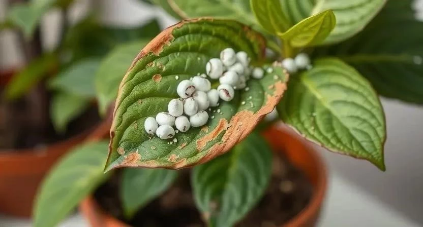 - Мучнистый червец: На листьях и стеблях образуются белые ватообразные комочки. Растение истощается и может погибнуть.