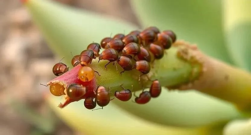 Тля – еще один распространенный вредитель комнатных растений. Эти мелкие насекомые, обычно зеленого цвета, собираются колониями на молодых побегах и листьях, высасывая сок. Пораженные растения деформируются, листья скручиваются и опадают. Тля также может переносить вирусные заболевания. Жизненный цикл тли зависит от температуры и влажности, но в благоприятных условиях она может размножаться очень быстро.