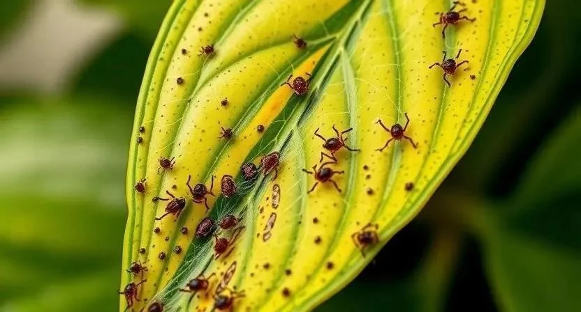 Этот микроскопический вредитель – настоящий кошмар для многих цветоводов. Паутинный клещ питается соком растений, высасывая его из клеток. В результате листья желтеют, покрываются мелкими точками и оплетаются тонкой паутиной, отсюда и название. Жизненный цикл паутинного клеща достаточно короткий, особенно в теплых и сухих условиях, что позволяет ему быстро размножаться и распространяться. Признаки поражения включают появление мелких желтых точек на листьях, паутину и общее угнетение растения.