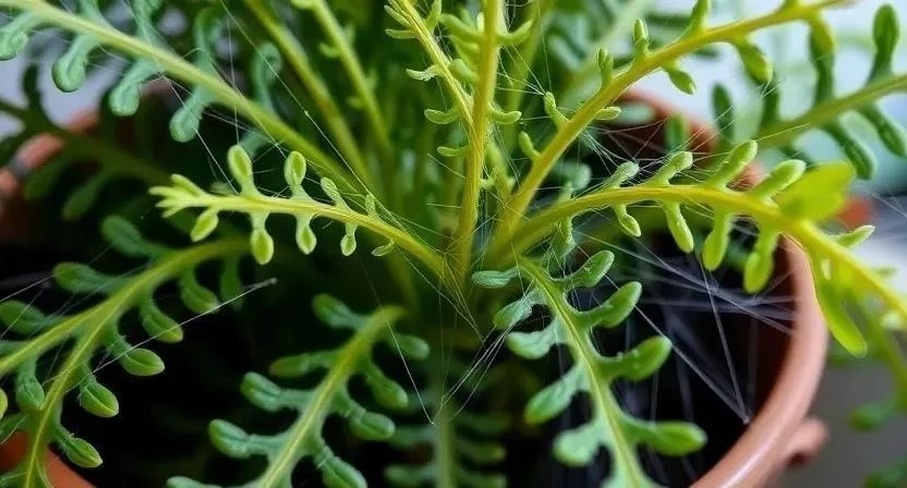 - Паутинный клещ: Очень мелкий вредитель, который плетет тонкую паутину на листьях. Листья желтеют и сохнут.