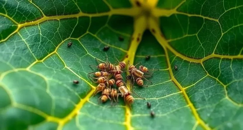 - Слистники: Личинки этих насекомых питаются соком листьев, оставляя на них ходы.