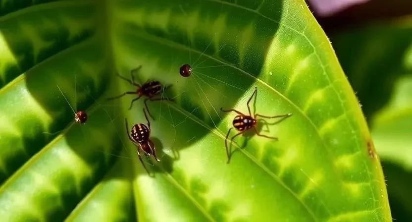 Паутинный клещ – микроскопический вредитель, который трудно заметить невооруженным глазом. Признаки поражения: появление мелких светлых точек на листьях, образование тонкой паутины, пожелтение и опадание листьев. Любит сухой воздух и высокую температуру.