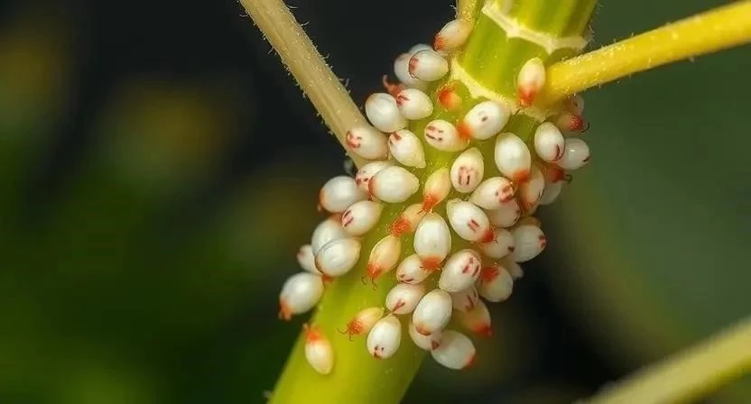 | Мучнистый червец | | Белые ватообразные комочки на листьях и стеблях | Обработка инсектицидами, мыльным раствором, удаление вручную |